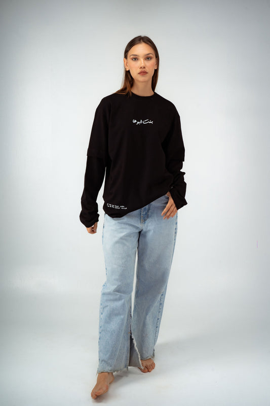 “Bent Abouha” Long-Sleeve T-shirt in Black