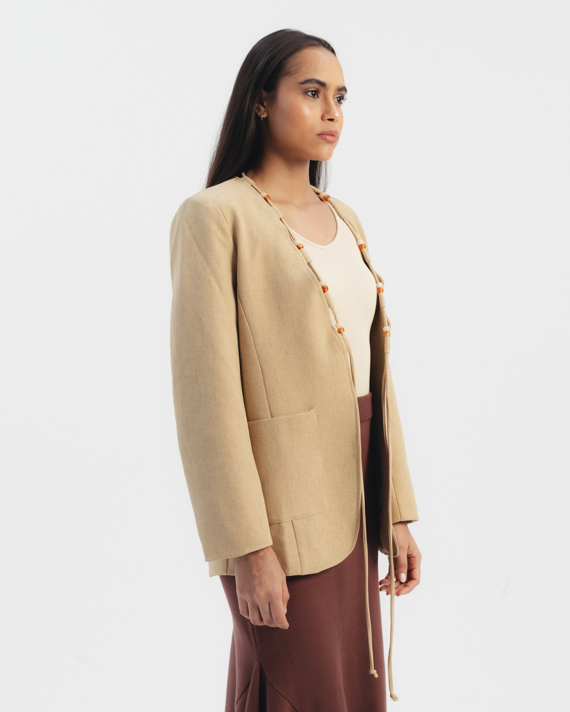 Beaded Detail Linen Blazer