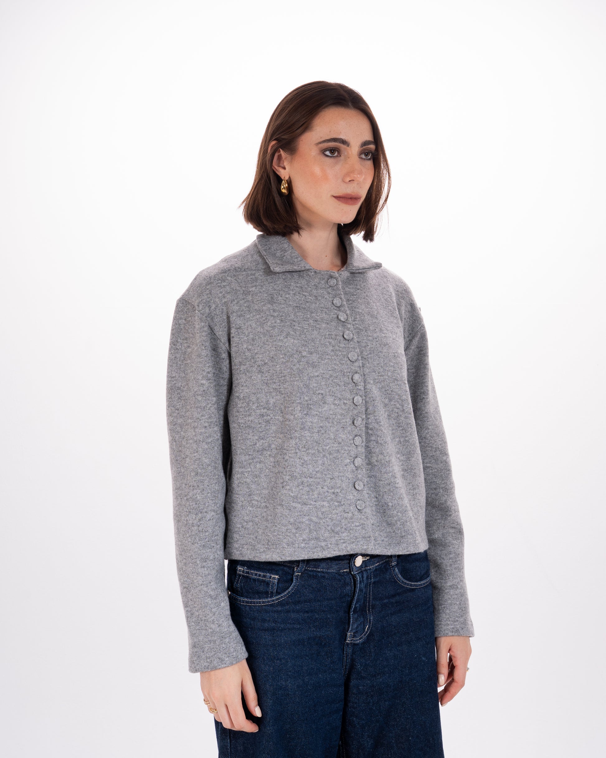 Leopard Print Collar Knit Cardigan in Grey